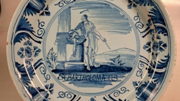 Blau-weisser Walzenkrug mit Bay. Wappen