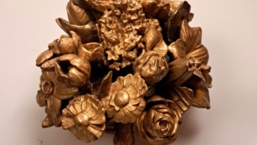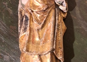 Holzgeschnitztes Bettlerpaar auf Sockel
